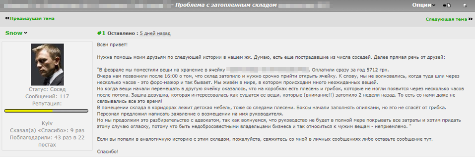 Іноді причиною стають зовнішні обставини, що не залежали від зберігача. На кшталт затоплення приміщення з вини сусідів або протікання даху з вини комунальників.
