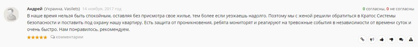 Ті, хто встановив охоронні системи «Кратос» у себе вдома або в офісі, запевняють, що отримали не тільки необхідні інструменти для управління власною безпекою, але й обслуговування «на рівні». Так, час прибуття ГШР на об’єкт після виклику в середньому становить до п’яти хвилин.