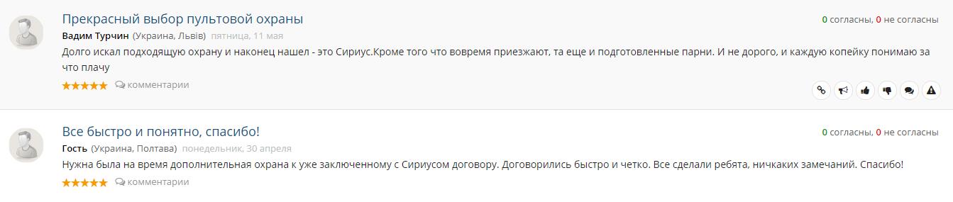 Постійні клієнти компанії запевняють, «Сіріус» — єдині, в групах затримання яких працюють професійні спортсмени зі спецпідготовкою. А для власників і тих, хто керує бізнесом, команда «Сіріуса» розробила комплексне рішення із захисту майна та конфіденційної інформації: