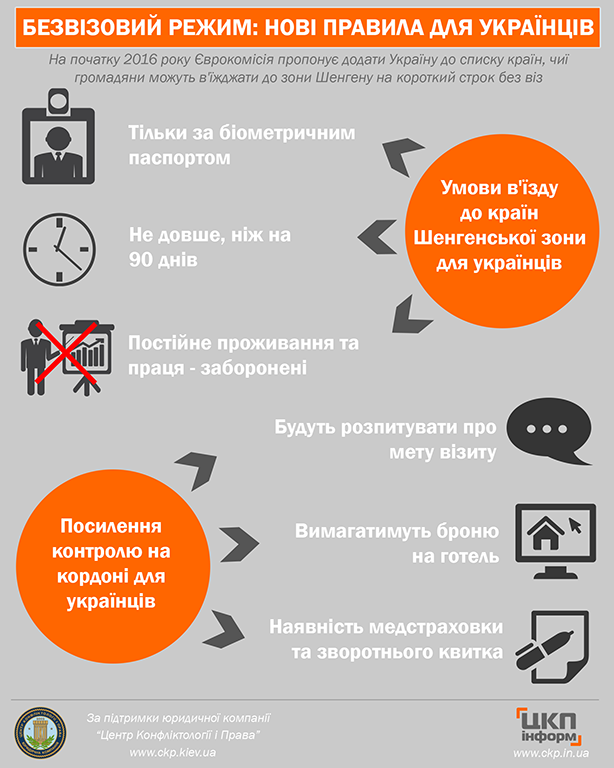 Єврокомісія рекомендувала впровадити безвізовий режим для України з 2016 року. Проте таке рішення повинні узгодити Європарламент та Рада міністрів ЄС. Для скасування віз Україна має виконати п’ять зобов’язань для боротьби з корупцією. Якщо все піде по плану, українці вже влітку або восени зможуть їздити до країн Шенгену без віз, проте з деякими умовами. Детальніше — в нашій інфографіці