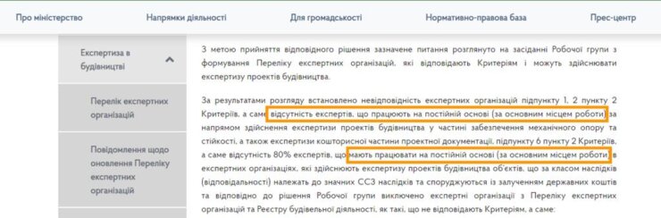 Ми розібралися у документах, які Мінрегіон “люб’язно” надав на журналістські запити та з’ясували: Міністерство вимагає від експертних підприємств, щоб їхні фахівці були працевлаштовані на постійній основі.
