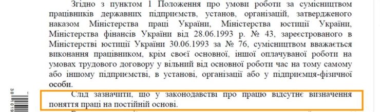 “Термін “працюють на постійній основі” означає працевлаштування за трудовим кодексом, незалежно від форми – як на основному місці роботи, так і за сумісництвом, або за контрактом“, – уточнюють юристи.