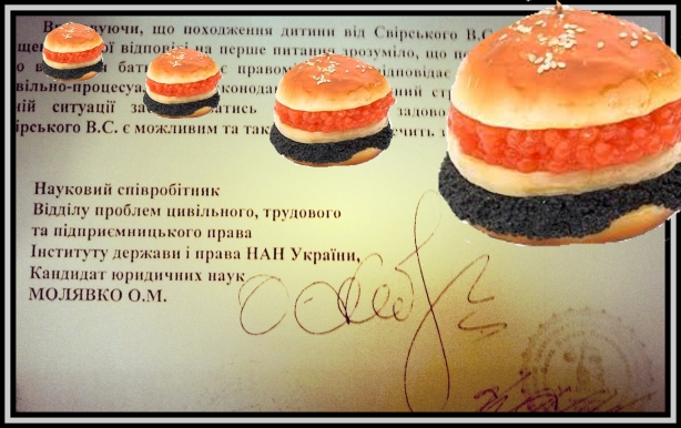 Более того, вдруг, как черт из табакерки, выскакивает очень неплохое для судей подспорье в виде научно-правой экспертизы Института государства и права им. В.М. Корецкого. Чтобы усилить отцовские амбиции, сторона истца решила обратиться в уважаемое заведение за дополнительными правовыми разъяснениями, вероятно, будучи как-то обнадёженной, что все необходимые заключения получит именно в свою пользу. И, бинго! Выдающиеся правоведы из отдела гражданского права «разъяснили», что не взирая на совершившийся факт по статье 126-й, данные обстоятельства «не урегулированы семейным кодексом» (?!), когда мужчина, вписанный в метрике отцом ребёнка, и претендующий спустя годы на отцовство субъект, не состояли с его матерью в браке, а значит нужно применять «аналогию права» и рассматривать данное дело, руководствуясь статьями 128 и 129 Семейного Кодекса Украины. Но, как это может быть?!