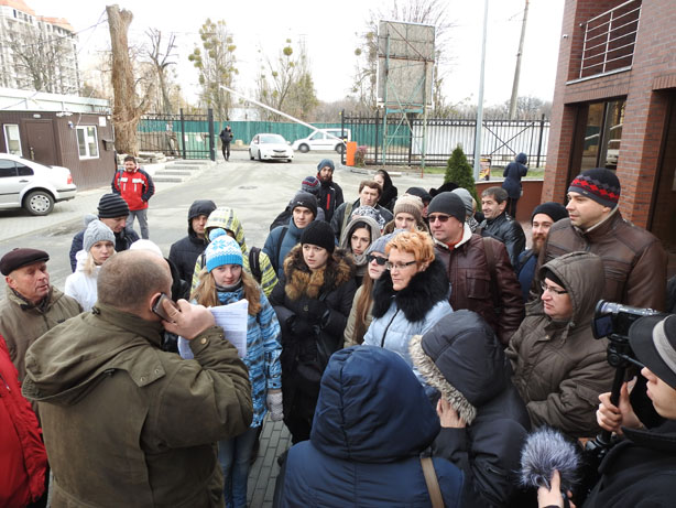 15 грудня цього року ініціативна група від імені інвесторів разом з журналістами приїхали до будівлі, де знаходиться відділ продажу забудовника ЖК Кришталеві джерела. Інвестори та громадськість хотіли отримати відповіді на усі питання: чому забудовник відмовляється віддавати мешканцям на руки їхні документи та не підписує договори та акти прийому-передачі? На яких підставах без відома та згоди мешканців забудовник та ЖЕК встановлюють додаткові платні послуги для інвесторів? Чому забудовник уникає конструктивного діалогу з людьми та порушує умови договору? Але, як виявилося, не те що поговорити з представниками забудовника, а навіть елементарно потрапити на територію комплексу практично неможливо. На вході інвесторів та журналістів відразу зустріли чоловіки міцної статури та сумнівної зовнішності, які категорично відмовились пускати людей на територію. Ці особи представились охороною даного об’єкту та поводились дуже зухвало. Вони грубили ошуканим інвесторам, перешкоджали роботі журналістів та навіть відмовлялись їх слухати. Зрозумівши, що діла не буде, журналісти змушені були викликати поліцію. Лише після приїзду поліції та слідчої групи до інвесторів та представників громадськості підійшов начальник охорони і дозволив тільки декільком людям зайти всередину.DSCN0564
