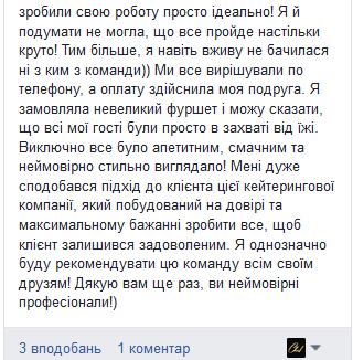 Самі львів’яни, хоча б раз попрацювавши з командою Chef, зауважують, що ця студія дійсно надає клієнтам такий кейтерінг, який не можуть надати інші: