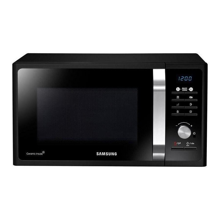 Завдяки преміум дизайну ця модель прикрасить будь-яку кухню: продумане поєднання чорного скла передньої панелі, металевої ручки і перемикача вигідно підкреслює синє світіння LED-дисплея. У мікрохвильовці Samsung реалізована технологія Triple Distribution System: мікрохвилі, що виходять з трьох спеціальних отворів, гарантують рівномірне нагрівання продуктів і підвищують якість приготування їжі. Об’єм НВЧ-печі становить 23 літри, є 20 попередньо встановлених програм. Усередині камери біокерамічне покриття, яке стійке до механічних пошкоджень і легко очищається від бруду. Також кераміка має низьку теплопровідність, що скорочує час приготування і зменшує тепловтрати.