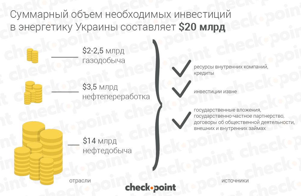 Наші вітчизняні запаси забезпечують тільки 62% споживання, інші необхідні обсяги доводиться імпортувати. За даними Naftogaz Europe, за 2016 рік в Україні було вжито 33,2 млрд м3 газу, з яких 33% становить імпорт. Не дивно, що в пріоритеті в уряду — нарощування власного виробництва енергії шляхом залучення інвестицій.