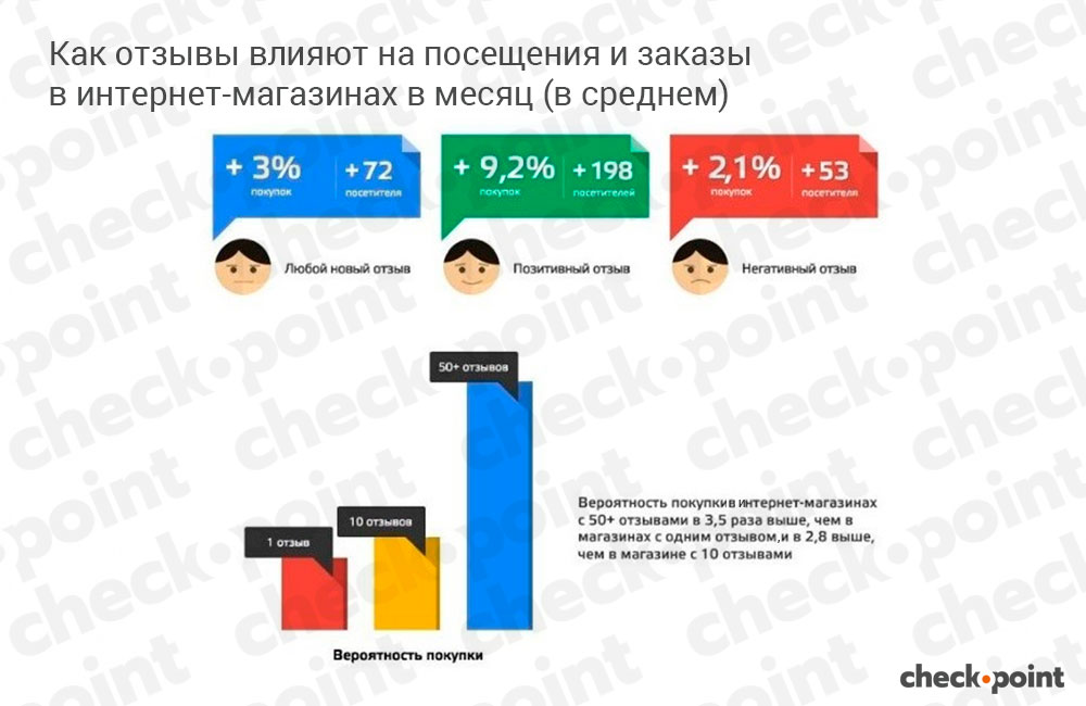 - основна маса споживачів купують товар або послугу після отримання позитивного або нейтрального відгуку. А 70% споживачів, побачивши схвальний відгук, купують саме рекомендований товар
