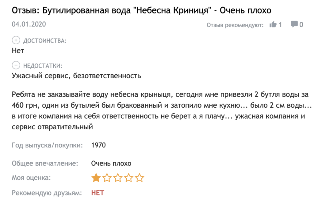 Цікаво, що на Фейсбук-сторінці “Небесної криниці” відсутня вкладка “Відгуки”. Можливо, саме через те, що над якістю обслуговування компанії ще варто добре попрацювати?