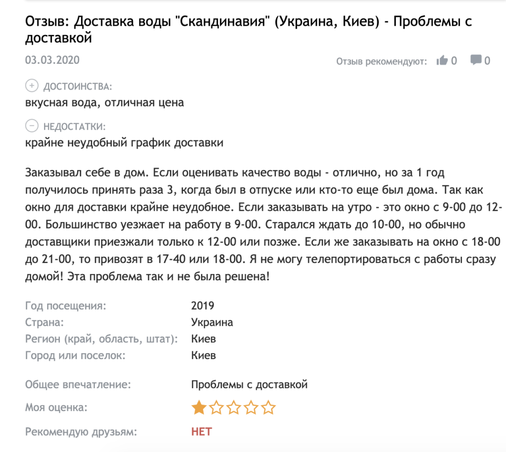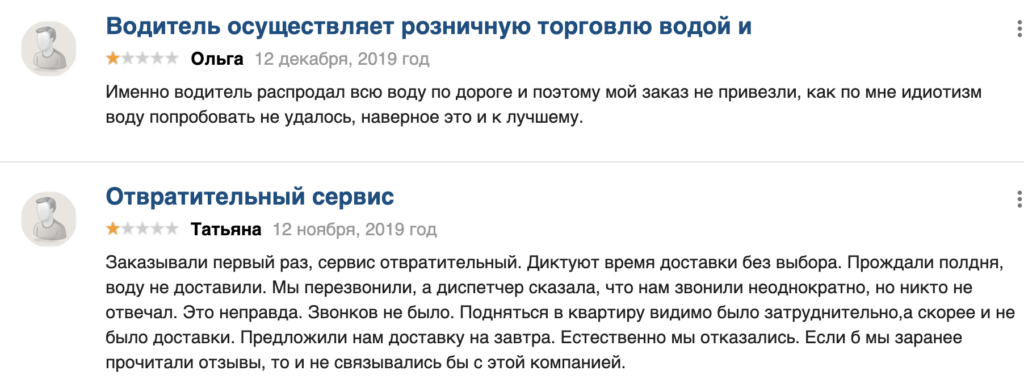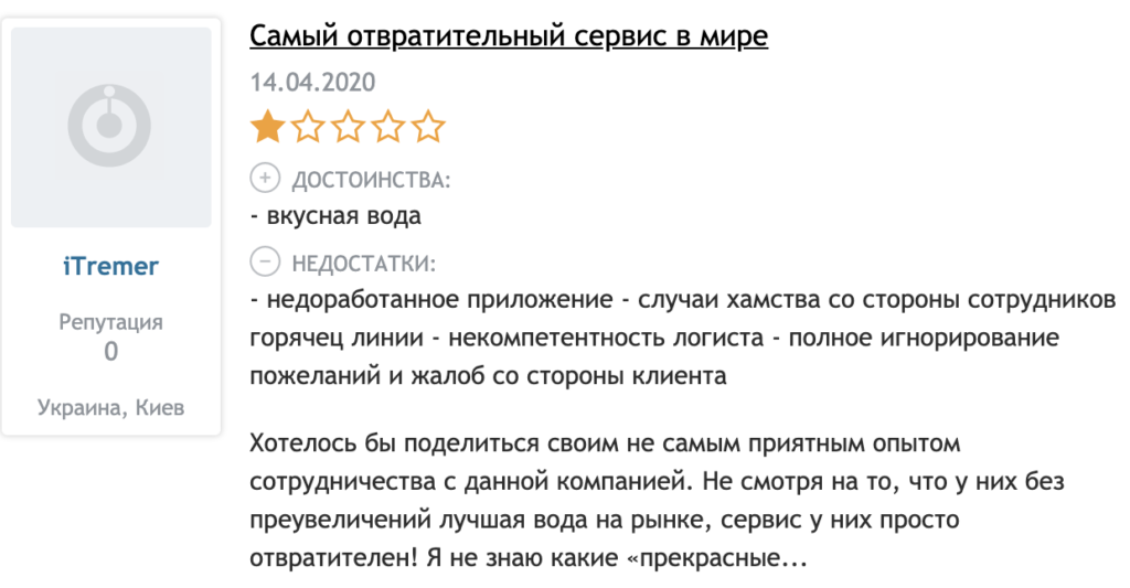 Крім цього, серйозним недоліком є те, що оплатити перше замовлення тут можна лише готівкою. Багато користувачів скаржаться, що через це замовляти воду, наприклад, батькам-пенсіонерам, дуже незручно, адже немає змоги оплатити доставку замість них.