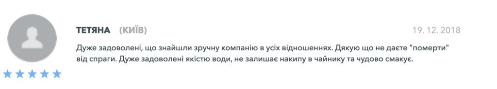Переваги: якість води, акції для існуючих та нових клієнтів