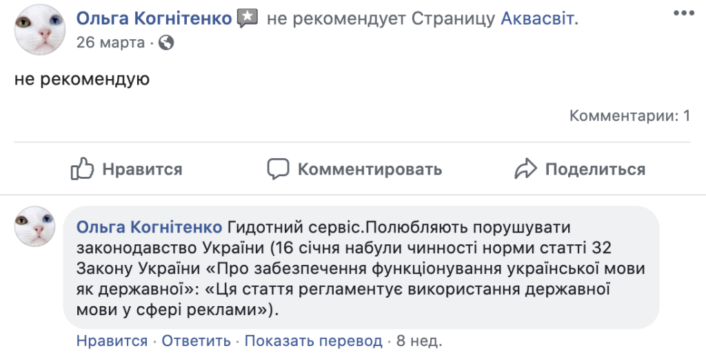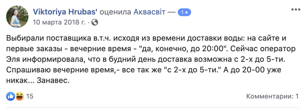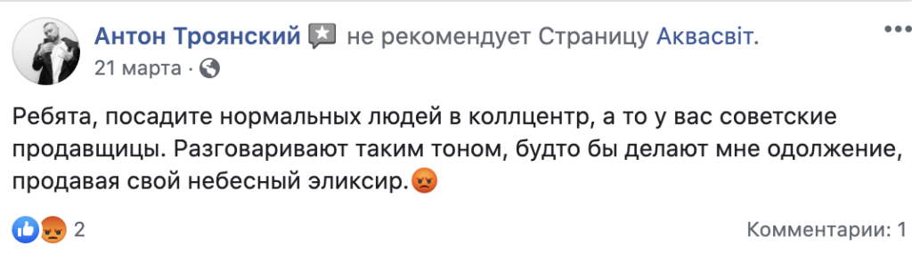 Та не дивлячись на хорошу якість продукції, сервіс “Аквасвіт” залишає бажати кращого. Аналізуючи відгуки клієнтів компанії, можна зробити висновок, що ситуація з кожним роком лише погіршується.