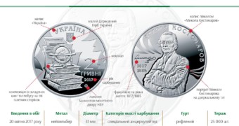 20 апреля Национальный банк Украины ввел в обращение памятную монету "Николай Костомаров" ...
