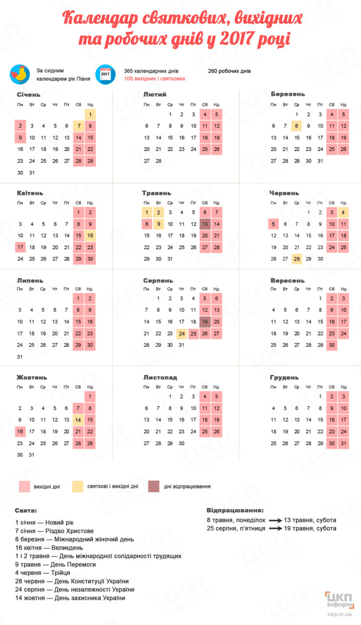 Напомним, что этот график рекомендован распоряжением Кабинета Министров Украины от 16.11.2016 года “О переносе рабочих дней в 2017 году”.