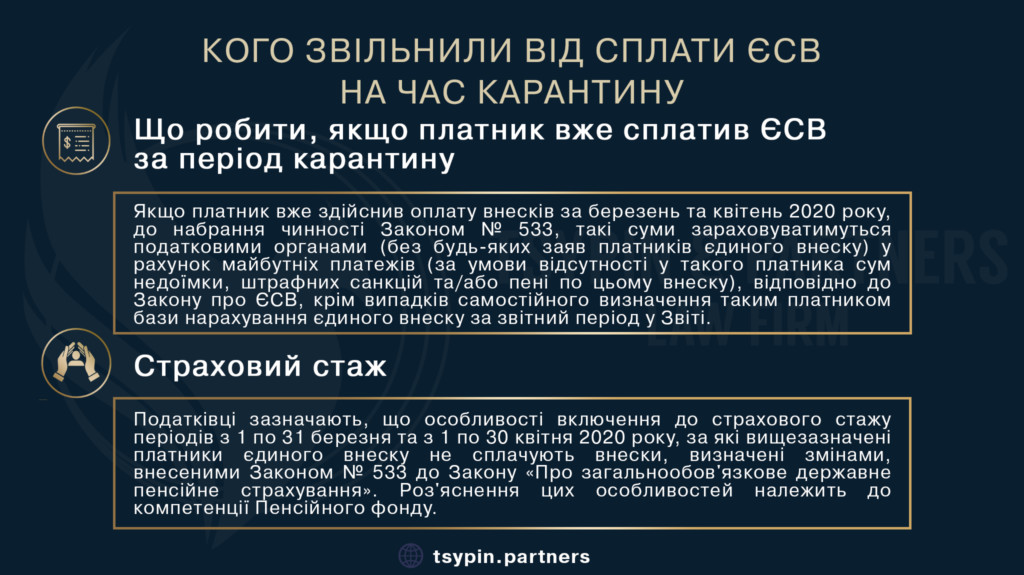 Кого освободили от уплаты ЕСВ на время карантина? Что делать, если плательщик осуществил оплату взносов за март и апрель 2020 года, до вступления в силу соответствующего закона?