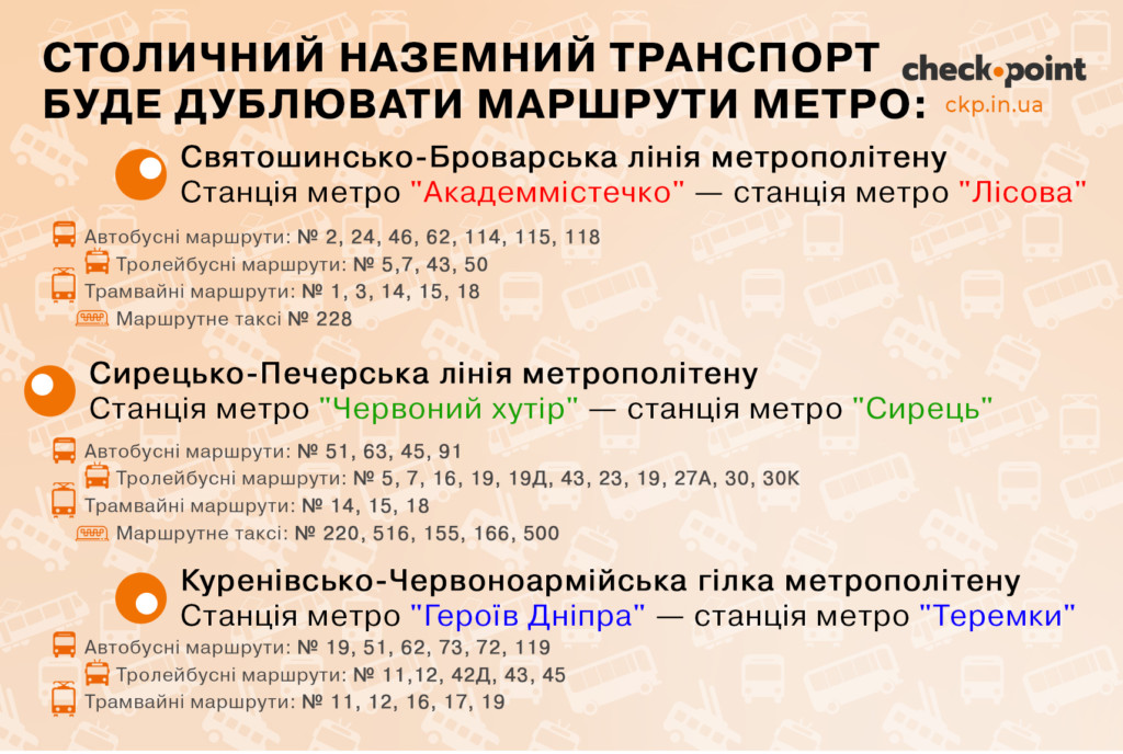 “Киевпастранс” обнародовал список маршрутов наземного транспорта, которые заменят метро.