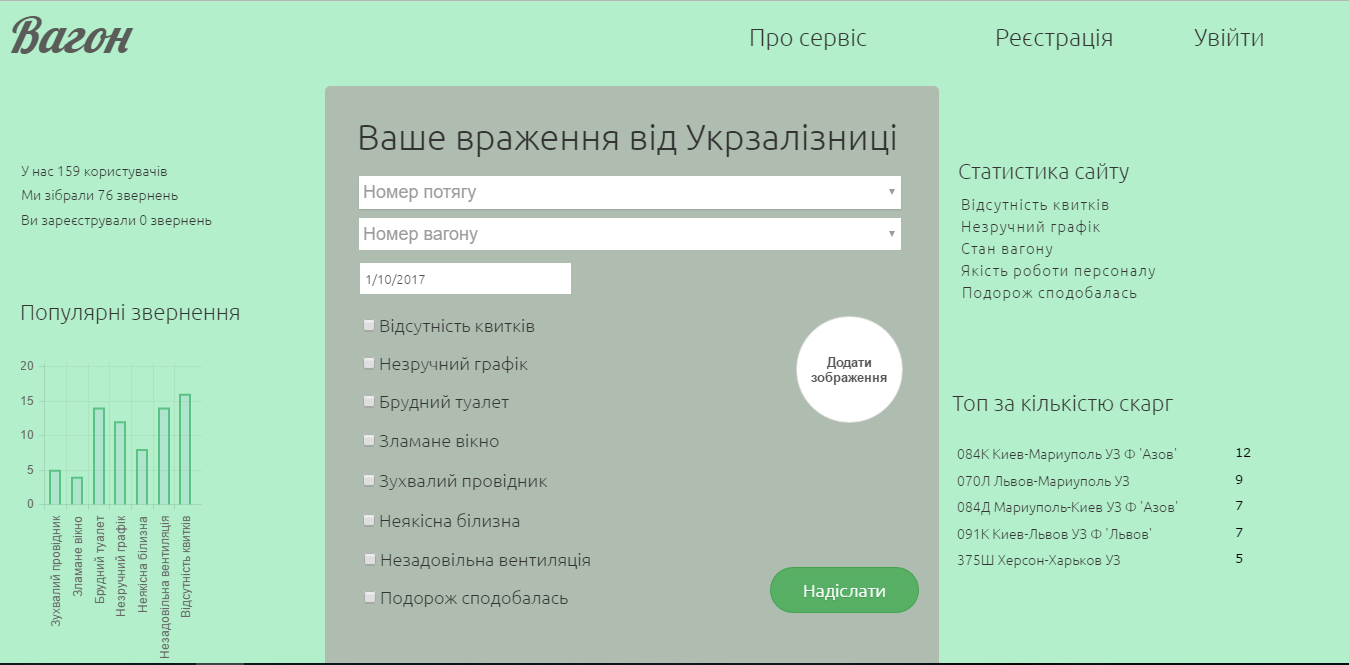 “Умная страна” — база отзывов о пользовании услугами Укрзализныци, Укравтодора и Укрпочты. Пользователи могут выбрать определенный участок дороги и указать, какая с ней проблема: ямы, нет асфальтового покрытия и тому подобное. По словам разработчиков, этот сервис поможет контролировать использование средств на развитие инфраструктуры.